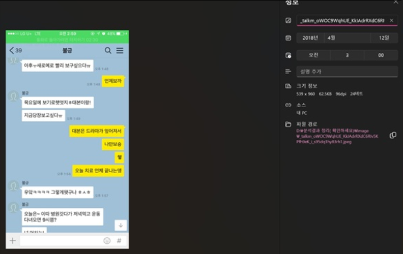 针对这一点,遗属方面指出:“为了证明以上KakaoTalk截图是金赛纶与金秀贤之间的KakaoTalk聊天记录,我们公开了从取证中提取的部分聊天记录。根据该资料,这段对话发生在2018年4月9日,金赛纶似乎是在2018年4月12日截图了这段对话。”